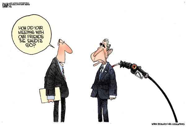 بوش: هذه سياستي فيما يتعلق بالطاقة. أولاً أرجوكم حميعاً أن تخفضوا الأسعار. بعدها سأبتعد لأترحى بوتين وشافيز بخفضها.