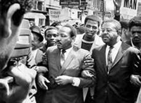 في 28 آذار 1968، قاد مارتن لوثر كنغ ورالف أبرنتي مسيرة بالنيابة عن العمال المضربين، سرعان ما دبَّت فيها الفوضى. وقد قال شهود عيان إن حوالى 200 شابًّا شرعوا في تحطيم نوافذ البلدة والنهب بعد حوالى 20 دقيقة من بدء المسيرة. وقد تدخلت شرطة مكافحة الشغب لقمعها باستعمال الغاز المسيل للدموع والهراوات. وبعد يومين، اتهمت إحدى الصحف كنغ بالتحريض على العنف: "... لقد أساء إلى سمعته كزعيم حين لاذ بالفرار لدى وقوع العنف، بدلاً من أن يحاول استعمال نفوذه المقنِع لوقفه." في تاريخ النضالات اللاعنفية، في كثير من الحالات كانت الدولة هي الخصم، وأرسلت الدولة عناصر شغب أو عناصر تحريض لتندس بين المتظاهرين، لأنهم كانوا يتمنون وجود عناصر عنف بينهم، لأن العنف كان بالضبط ما يسوِّغ القمع. في بورما، مثلاً، بحسب ما فهمت، كان هناك جنود تنكروا في زي رهبان وحطموا واجهات المحلات (وجدت على الإنترنت صورة كان فيها الجنود يستلمون زي الرهبان!). في فرنسا أيضًا، في السبعينيات، تعاملنا أيضًا مع مسألة عناصر الشغب المدسوسة بيننا. ومن هنا ضرورة تحييد أولئك الذين يريدون استعمال العنف. بالطبع، يجب لهذا أن يتم إعداد المناضلين للعمل اللاعنفي. وهنا أطرح... النقطة الرابعة: اختيار التنظيم: يراهن العمل اللاعنفي على المسؤولية الشخصية لكلِّ مشارك، رجلاً كان أم امرأة. ولكن حتى يكون العمل فعالاً يجب أن يكون جماعيًّا ومنظمًا. (لا توجد أعمال "تلقائية" للجماهير، كما يقال أحيانًا.) ويجب على التنظيم نفسه أن يكون في حدِّ ذاته لاعنفيًّا، يجب ألا يكون التنظيم قابلاً لمقارنته بالتنظيم العسكري. تنظيم لاعنفي يعني أن يكون ديموقراطيًّا كأفضل ما يكون، بحيث يستطيع من خلاله جميع العاملين المشاركة في صنع القرار. يجب أن يكون التنظيم اللاعنفي صورة حية عن المجتمع الذي يسعى في تحقيقه. وفي الوقت نفسه، يجب التحلِّي بالواقعية: في حملة عمل لاعنفي يجتمع آلاف الناس؛ وهذا لا يتيح، لدى اتخاذ قرار ما، ما نسمِّيه بـ"الديموقراطية المباشرة". أحيانًا تتطلب ضرورةُ العمل اتخاذَ قرار سريع. ومن هنا ضرورة انتخاب مسئولين يحوزون على ثقة المناضلين، ما يسمى بـ"لجنة تنسيق" أو "لجنة قيادة" (شخصيًّا أفضل تسمية "لجنة تنسيق" comité de coordination) تكون مخوَّلة اتخاذ القرار. هنا تنطرح مشكلة القائد أو الزعيم. بالطبع، جميع العاملين في الحملة متساوون، لكن من طبيعة العمل الجماعي، في الآن نفسه، أن يوجد في المجموعة ناطق باسمها في النضال. صعب جدًّا فهمُ كيف يصير المرء قائدًا. في أغلب الأحيان لا يقرر المرء أنه سيصير قائدًا، كما يصعب أيضًا في كثير من الأحيان انتخاب قائد. يصير المرء قائدًا من خلال سيرورة معقدة نوعًا ما. يتحلَّى القائد بشخصية قوية، كما يجب على مجموع أفراد الجماعة أن يقروا بحكمته. ودور القائد هو المحافظة على تماسُك الجماعة. لكن من الخطر أن يصير كاريزما القائد مبالغًا فيه، وألا تقوم قوة الجماعة إلا على كاريزما القائد، لأنه إذا مات القائد أو سُجِنَ أو قُتِلَ ستصير الجماعة يتيمة، ويمكن لها عندئذٍ أن تتعرض للتفكك. فلكي نتجنب أن يحتل القائد الموقع الحاسم يجب أن تكون الجماعة أكثر ما يمكن ديموقراطية. في أغلب الأحيان، يوجد عدة قادة، ولكن يوجد دومًا زعيم هو "قائد أكثر من غيره"! فإذا درسنا "حركة الحقوق المدنية"، رأينا أن شخصية مارتن لوثر كنغ ودوره كقائد كانا من القوة بحيث إنه ما إن اغتيل سرعان ما تفككت الحركة. رالف أبرنتي Ralph Abernathy صار بعد وفاة كنغ القائد بشكل طبيعي، لكنه لم يكن يتمتع بهيبة كنغ، ولم يتمكن من المحافظة على تماسُك الحركة السوداء.